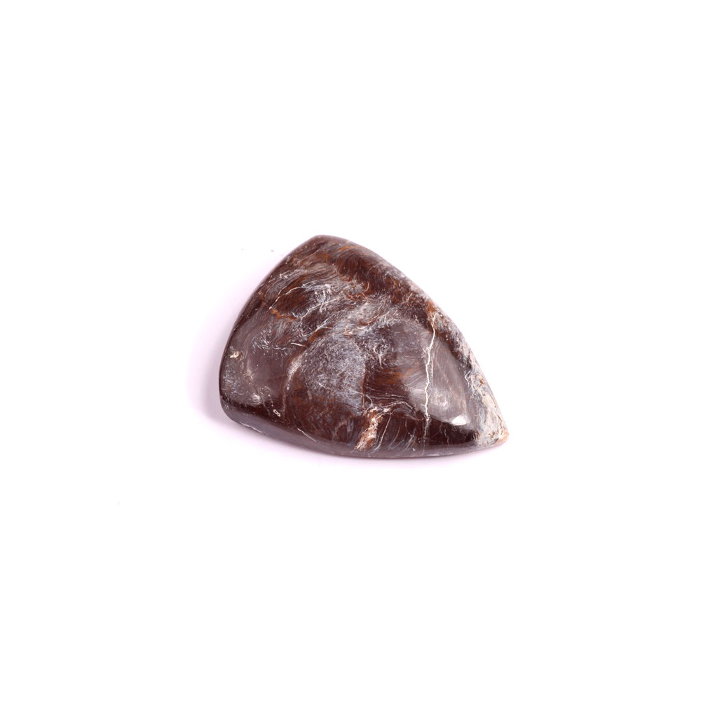 Pietersite je fascinující kámen s unikátními vířivými vzory, které přecházejí od tmavě hnědých a šedých tónů až po zlaté a modravé odlesky. Tento kabošon vyniká svou přirozenou krásou a jedinečnou texturou, která připomíná tančící bouři zachycenou uvnitř minerálu. Díky tomuto charakteristickému vzhledu je Pietersite oblíbeným kamenem nejen mezi šperkaři, ale také mezi sběrateli a milovníky minerálů.