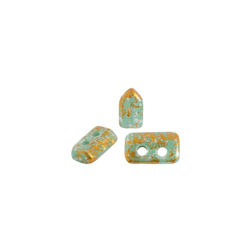 Tyrkysová barva s fascinujícím efektem Opaque Green Turquoise Tweedy přináší do vašich projektů nádech starobylé patiny a luxusu. Každý korálek Piros® par Puca® o rozměru 5 x 3 x 2 mm je opatřen jemným zlatavým mramorováním, které na sytém podkladu vytváří jedinečnou hru textur. Díky dvěma průtahům o velikosti 0,8 mm jsou tyto prvky nepostradatelné pro složité prostorové konstrukce a geometrické vzory.