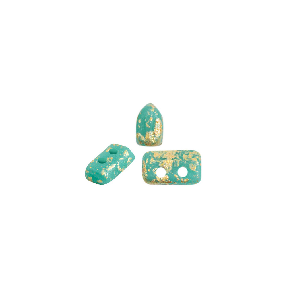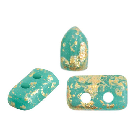 Tyrkysová barva s matným povrchem a zlatým efektem řeší dilema, jak dodat šperku texturu a hloubku bez použití příliš mnoha komponentů. Tyto dvou dírkové české skleněné korálky Piros® par Puca® jsou ideální volbou pro každou tvůrkyni, která hledá preciznost a styl při výrobě náročných designů. Specifický povrch Mat Splash dodává každému kusu unikátní vzhled, který vynikne v náramcích i náhrdelnících.