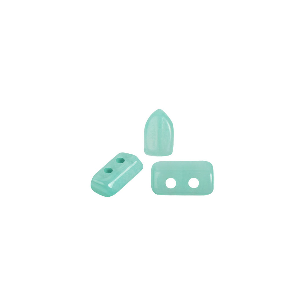 5 x 3 x 2 mm jsou precizní rozměry těchto dvoudírkových korálků, které vynikají geometrickou přesností a jemným mléčným leskem. Piros® par Puca® v odstínu blue green opal disponují dvěma paralelními otvory o průměru 0,8 mm, což umožňuje plynulý vícenásobný průchod nití korálkem bez rizika prasknutí. Při práci doporučujeme používat profesionální korálkovací jehly velikosti 10-12 v kombinaci s pevnou nití S-lon FIRE, která zajistí tvarovou stálost a dlouhou životnost vašeho šperku.