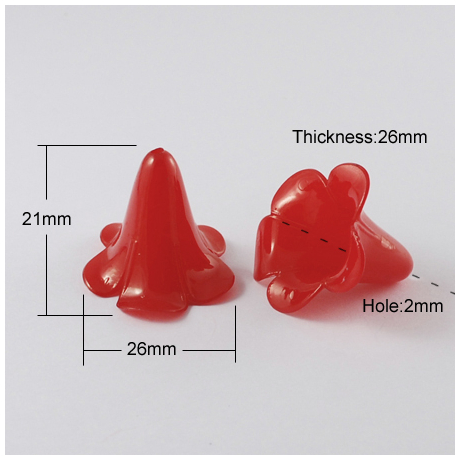 Tyto plastové korálky ve tvaru sukýnky o rozměrech 21x26 mm jsou ideální pro výrobu elegantních a hravých šperků nebo dekorací. Jejich jemný a ladný tvar přidá vašim výrobkům kouzlo a originalitu.