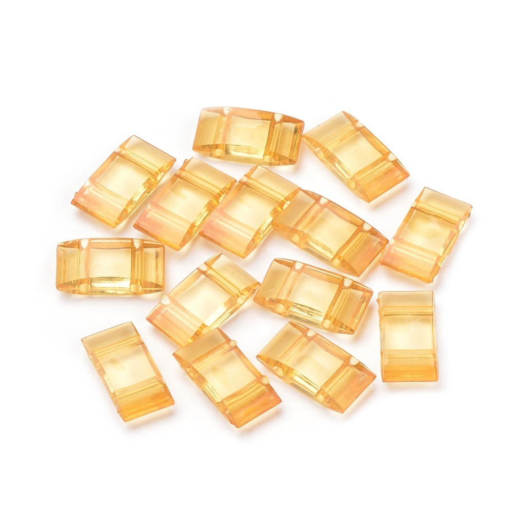 Tyto plastové korálky ve tvaru obdélníčků s dvěma dírkami jsou ideální pro jemné korálkové obšívání. Jejich jednoduchý tvar je perfektní pro kombinaci s drobnými rocailovými korálky nebo korálky Miyuki Delica 11/0. Korálky vám umožní vytvářet precizní a detailní vzory pro vaše šperky a dekorace.
