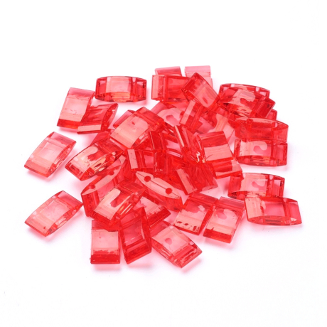 Tyto plastové korálky ve tvaru obdélníčků s dvěma dírkami jsou ideální pro jemné korálkové obšívání. Jejich jednoduchý tvar je perfektní pro kombinaci s drobnými rocailovými korálky nebo korálky Miyuki Delica 11/0. Korálky vám umožní vytvářet precizní a detailní vzory pro vaše šperky a dekorace.