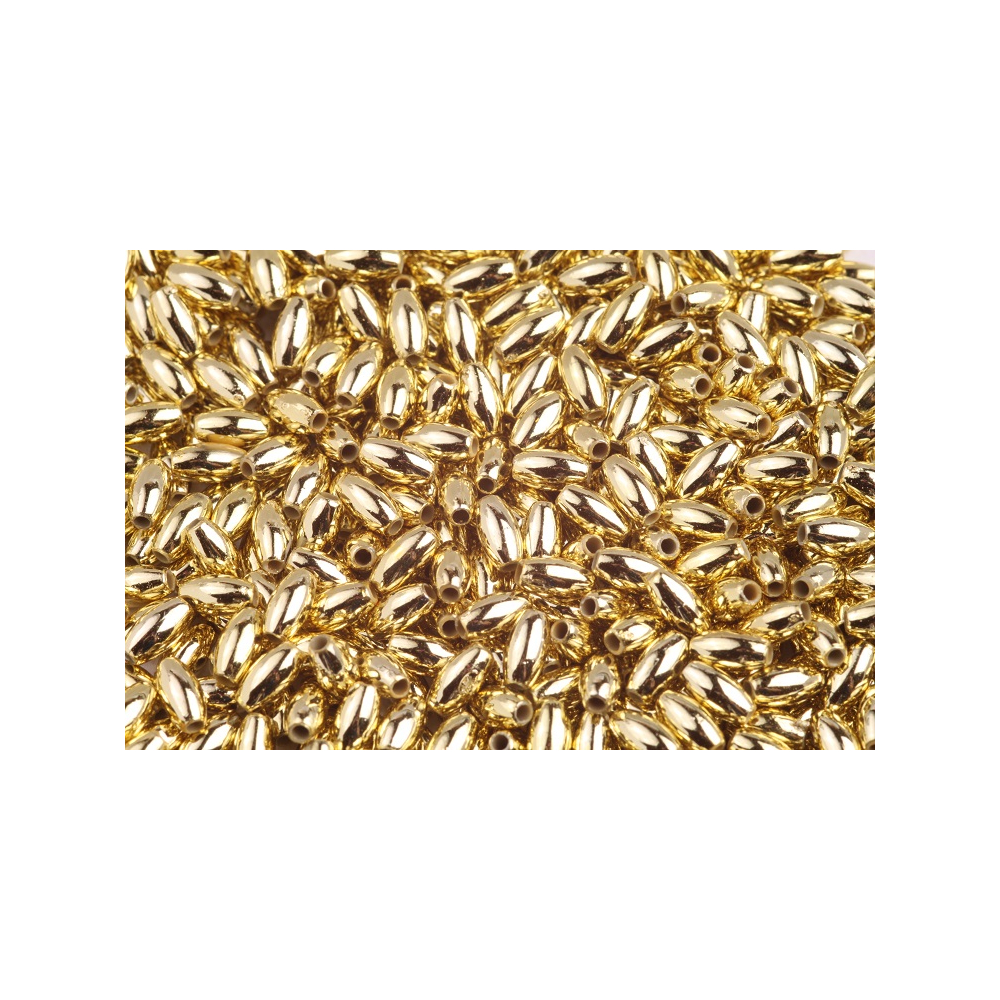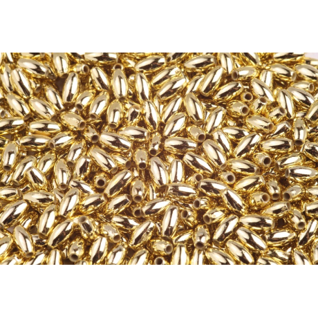 Tyto plastové korálky ve tvaru rýže o velikosti 6x3 mm se zlatým lesklým povrchem jsou ideální pro jemné a elegantní šperky nebo dekorace. Jejich drobný tvar a zlatý povrch dodávají luxusní nádech každému kreativnímu projektu, který vytváříte.