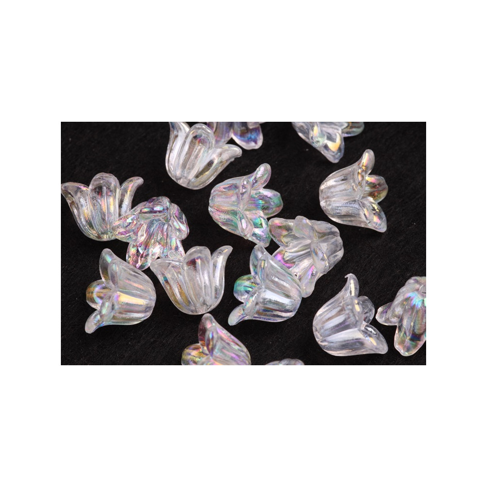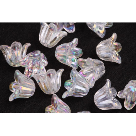 Rozjasněte své řemeslné projekty s iridescentními plastovými korálky ve tvaru květů, které jsou stejně kouzelné jako praktické. Tyto korálky o rozměrech 10 x 15 mm přináší světelnou hru plnou barev a posouvají vaše výrobky na novou úroveň. Ideální pro výrobu jemných andělských přívěsků, náušnic či dalších dekorací, které osloví všechny věkové kategorie.