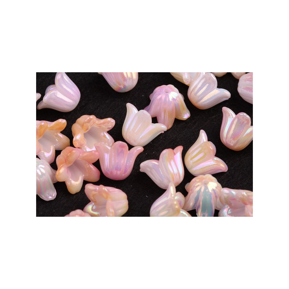 Rozjasněte své řemeslné projekty s iridescentními plastovými korálky ve tvaru květů, které jsou stejně kouzelné jako praktické. Tyto korálky o rozměrech 10 x 15 mm přináší světelnou hru plnou barev a posouvají vaše výrobky na novou úroveň. Ideální pro výrobu jemných andělských přívěsků, náušnic či dalších dekorací, které osloví všechny věkové kategorie.