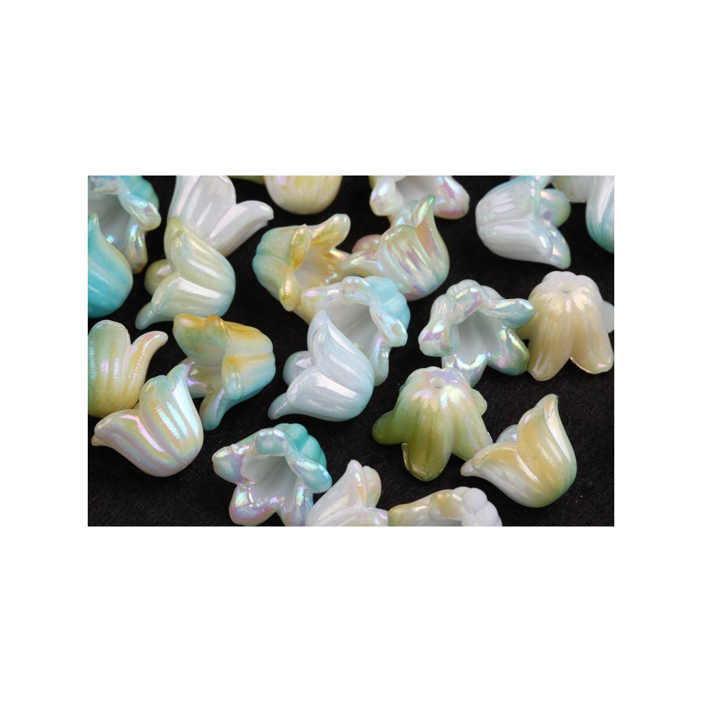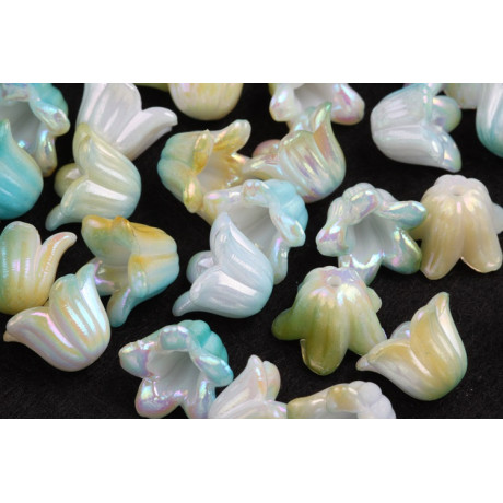 Rozjasněte své řemeslné projekty s iridescentními plastovými korálky ve tvaru květů, které jsou stejně kouzelné jako praktické. Tyto korálky o rozměrech 10 x 15 mm přináší světelnou hru plnou barev a posouvají vaše výrobky na novou úroveň. Ideální pro výrobu jemných andělských přívěsků, náušnic či dalších dekorací, které osloví všechny věkové kategorie.