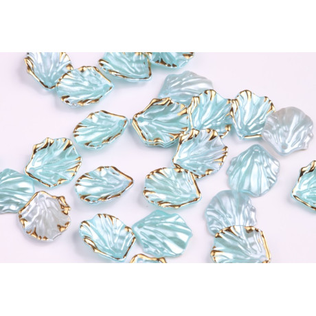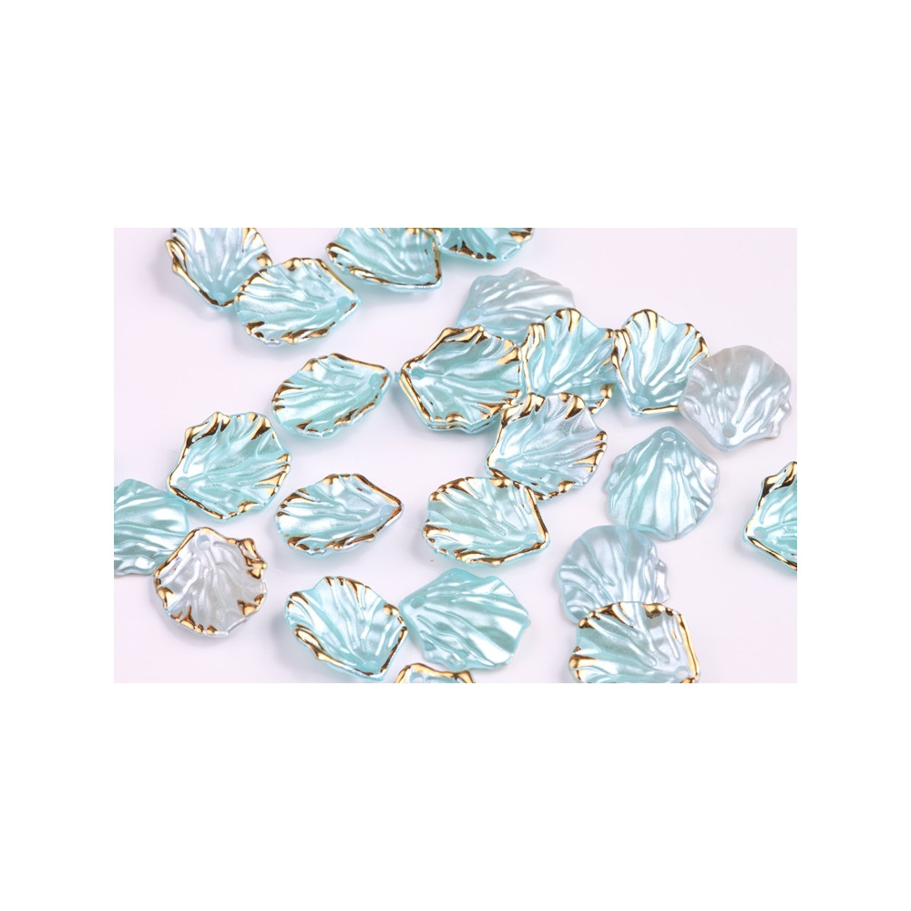 Rozměry 15 x 17 mm a jemná barva s kontrastními zlatými okraji činí z těchto korálků lístků výrazný prvek vhodný pro různé designy.