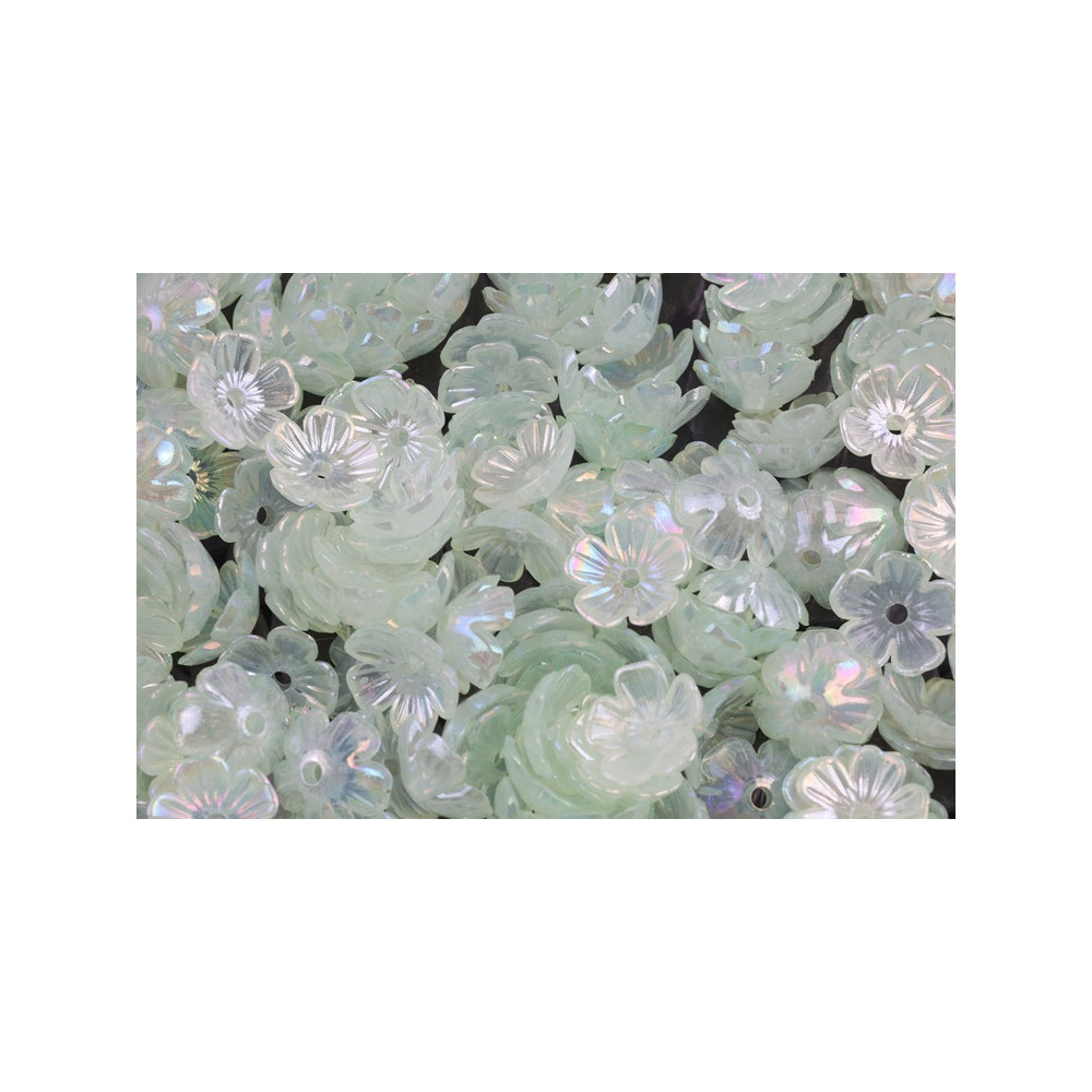 Plastové korálky ve tvaru malé kytičky Velikost: 10 mm Cena za cca 15 ks Barva: zelená mix
