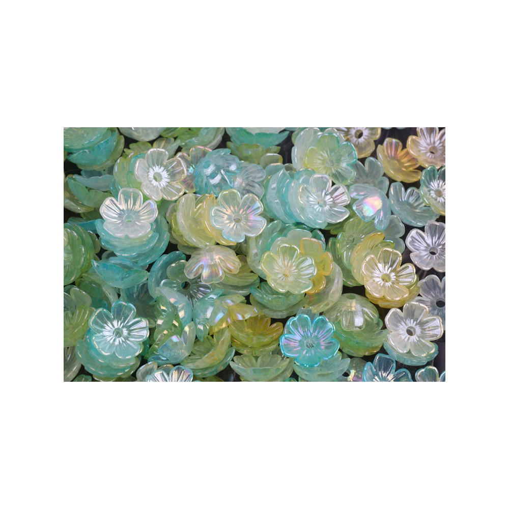 Plastové korálky ve tvaru malé kytičky Velikost: 10 mm Cena za cca 15 ks Barva: zelená