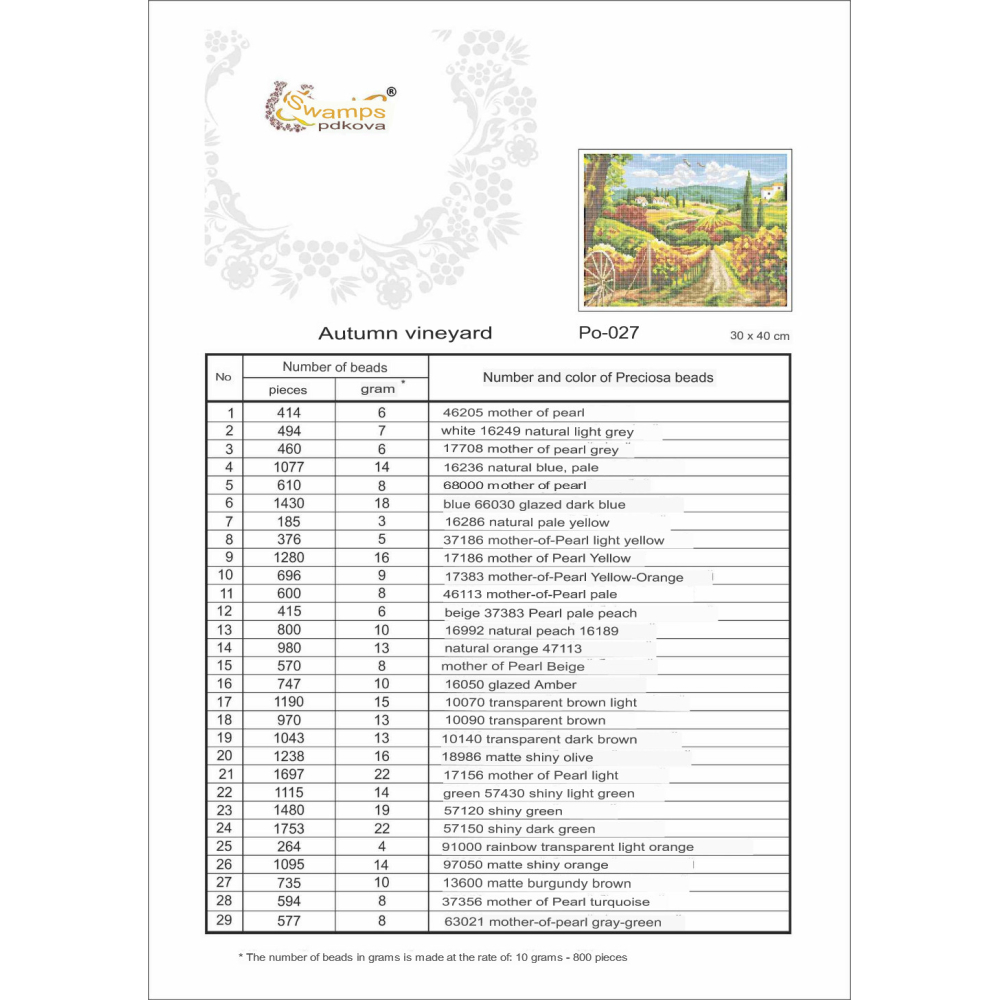 Plátno pro vyšívání korálky Velikost cca 30 x 30 cm Počet barev: 23 Vzor: Zátiší Materiál: 100 %...