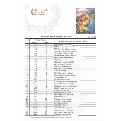 Plátno pro vyšívání korálky Velikost cca 30 x 40 cm Počet barev: 33 Vzor: Náboženství a víra...