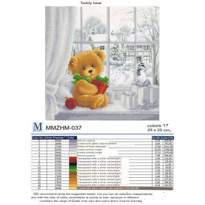 Plátno pro vyšívání korálky Velikost cca 25 x 25 cm Počet barev: 17 Vzor: Zvířata Materiál:...