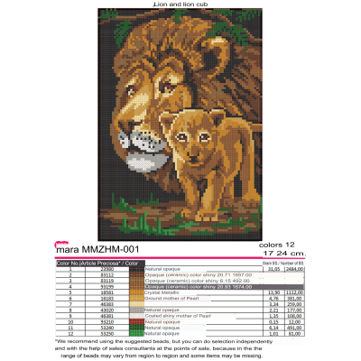 Plátno pro vyšívání korálky Velikost cca 17 x 24 cm Počet barev: 12 Vzor: Zvířata Materiál:...