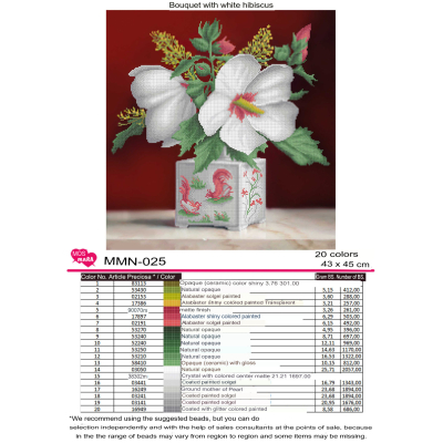 Plátno pro vyšívání korálky Velikost cca 43 x 45 cm Počet barev: 20 Vzor: Zátiší Materiál:...