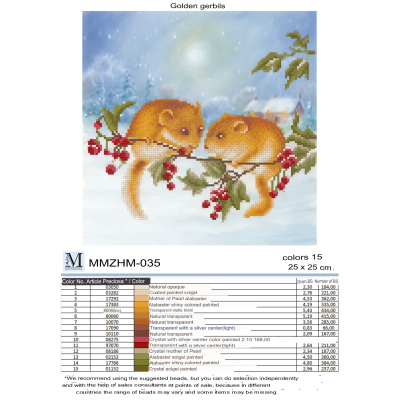 Plátno pro vyšívání korálky Velikost cca 25 x 25 cm Počet barev: 15 Vzor: Zvířata Materiál:...