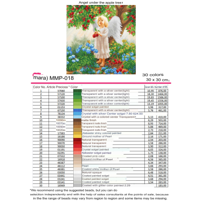 Plátno pro vyšívání korálky Velikost cca 30 x 30 cm Počet barev: 30 Vzor: Andělé Materiál:...