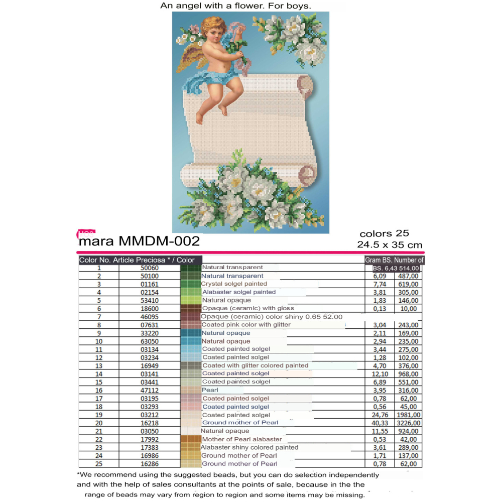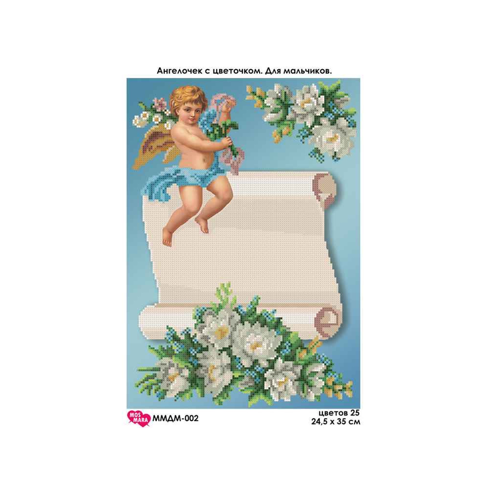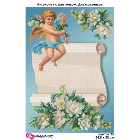 Plátno pro vyšívání korálky Velikost cca 24,5 x35 cm Počet barev: 10 Vzor: Andělé Materiál:...