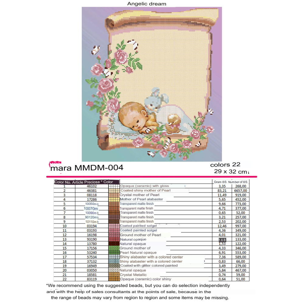 Plátno pro vyšívání korálky Velikost cca 22 x 29 cm Počet barev: 19 Vzor: Andělé Materiál: 100 %...