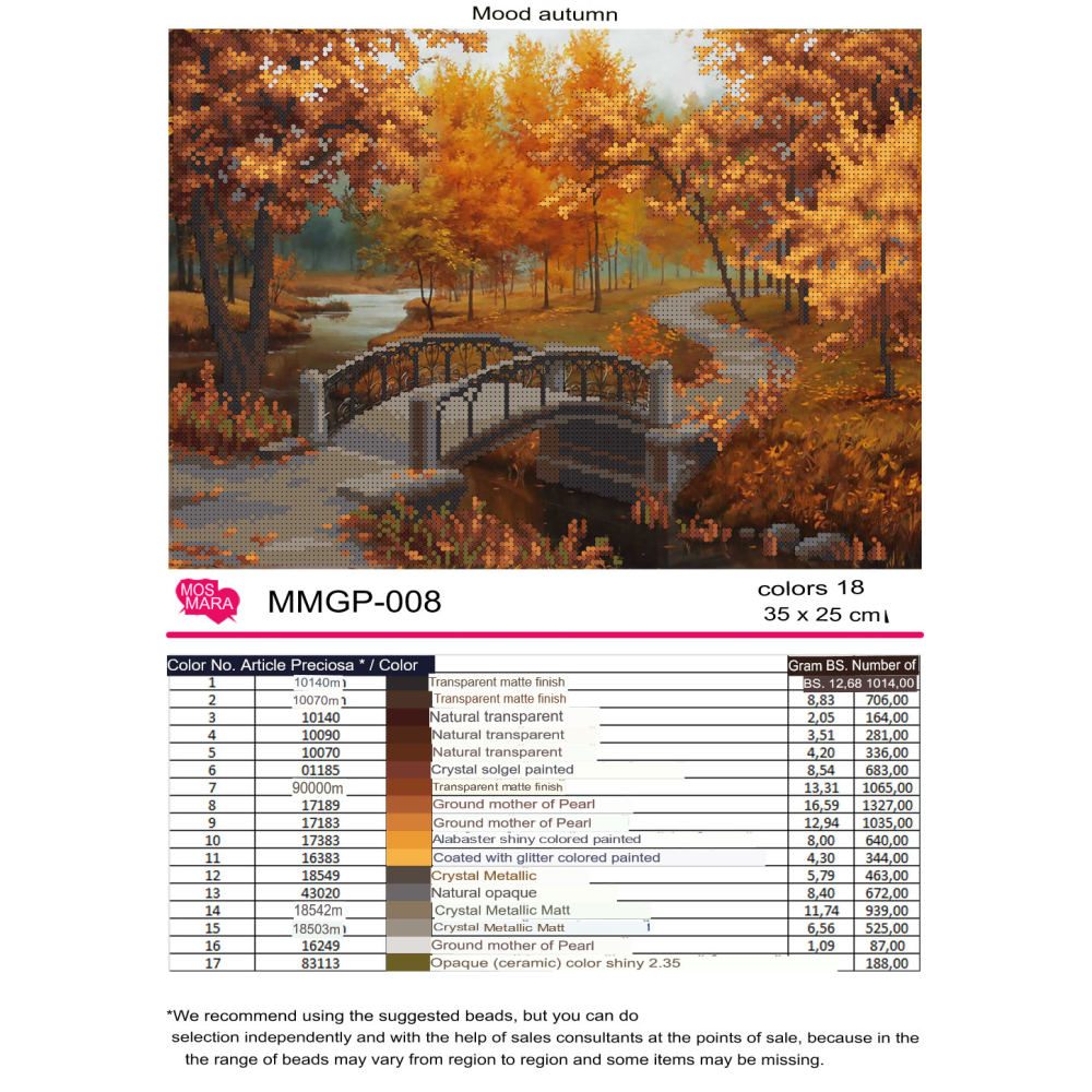 Plátno pro vyšívání korálky Velikost cca 43 x 45 cm Počet barev: 20 Vzor: Zátiší Materiál:...