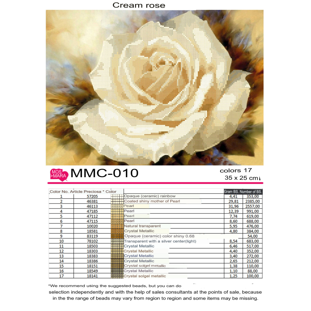 Plátno pro vyšívání korálky Velikost cca 43 x 45 cm Počet barev: 20 Vzor: Zátiší Materiál:...