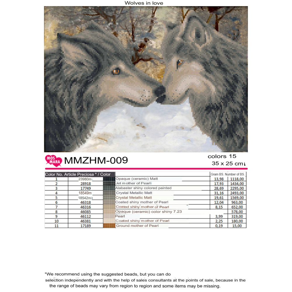 Plátno pro vyšívání korálky Velikost cca 57 x 40 cm Počet barev: 11 Vzor: Zvířata Materiál:...