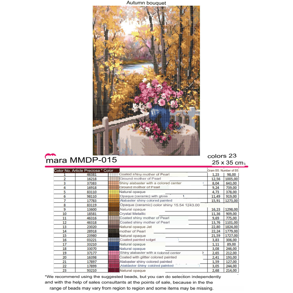 Plátno pro vyšívání korálky Velikost cca 30 x 39 cm Počet barev: 15 Vzor: Květiny a stromy...