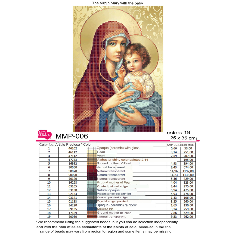 Plátno pro vyšívání korálky Velikost cca 22 x 29 cm Počet barev: 19 Vzor: Andělé Materiál: 100 %...