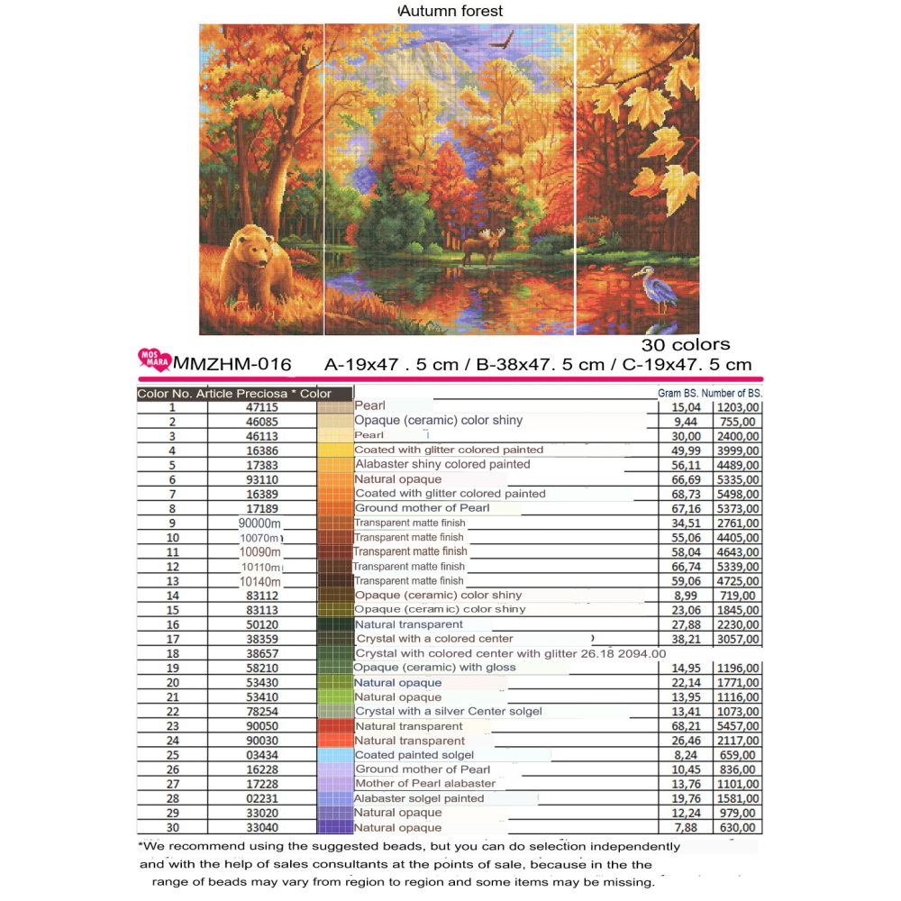 Plátno pro vyšívání korálky Velikost cca 65 x 40 cm Počet barev: 28 Vzor: Zvířata Materiál:...