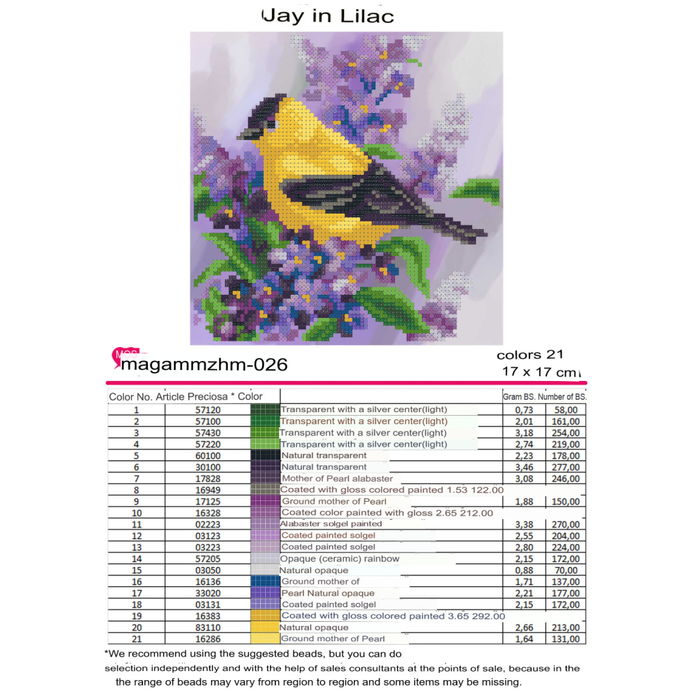 Plátno pro vyšívání korálky Velikost cca 30 x 41 cm Počet barev: 21 Vzor: Zátiší Materiál: 100 %...