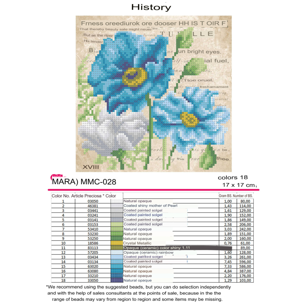 Plátno pro vyšívání korálky Velikost cca 17 x 17 cm Počet barev: 13 Vzor: Květiny a stromy...