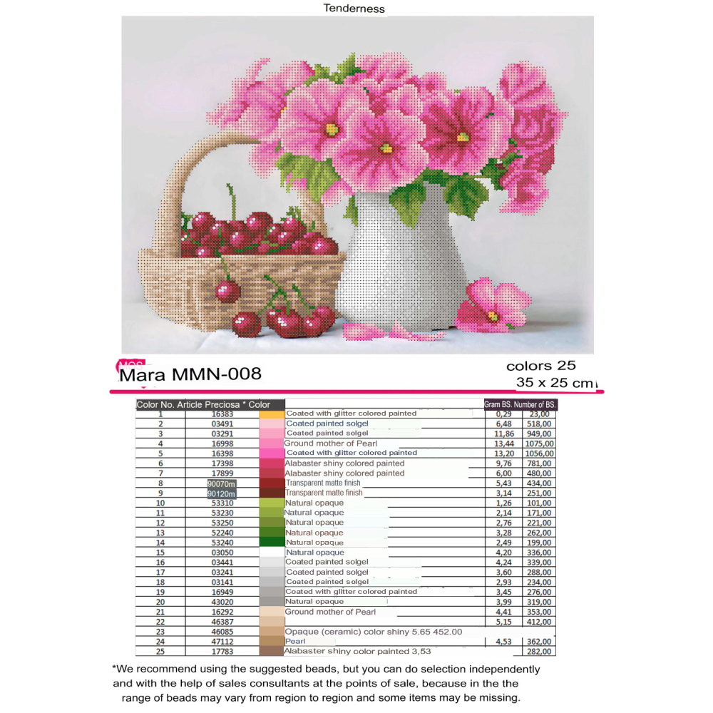 Plátno pro vyšívání korálky Velikost cca 55 x 41 cm Počet barev: 26 Vzor: Květiny a stromy...