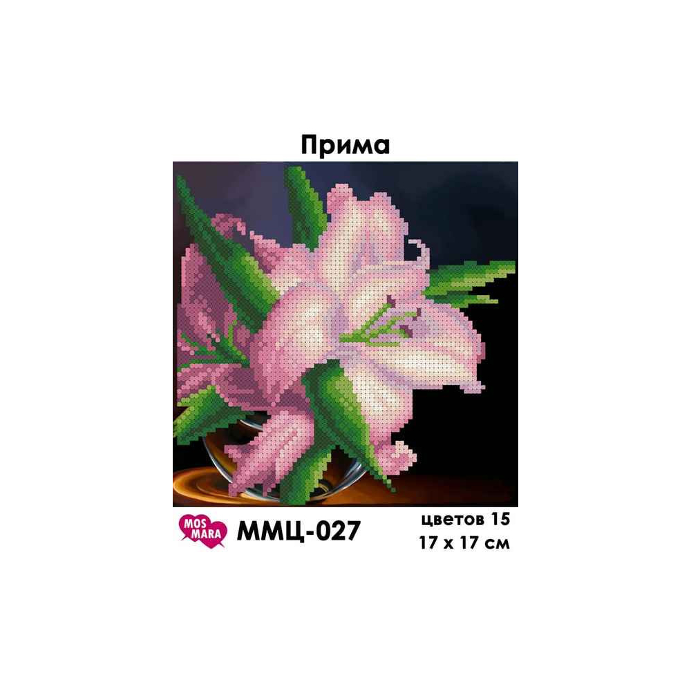 Plátno pro vyšívaní korálky - Růžový květ - č. 135 17 x 17 cm