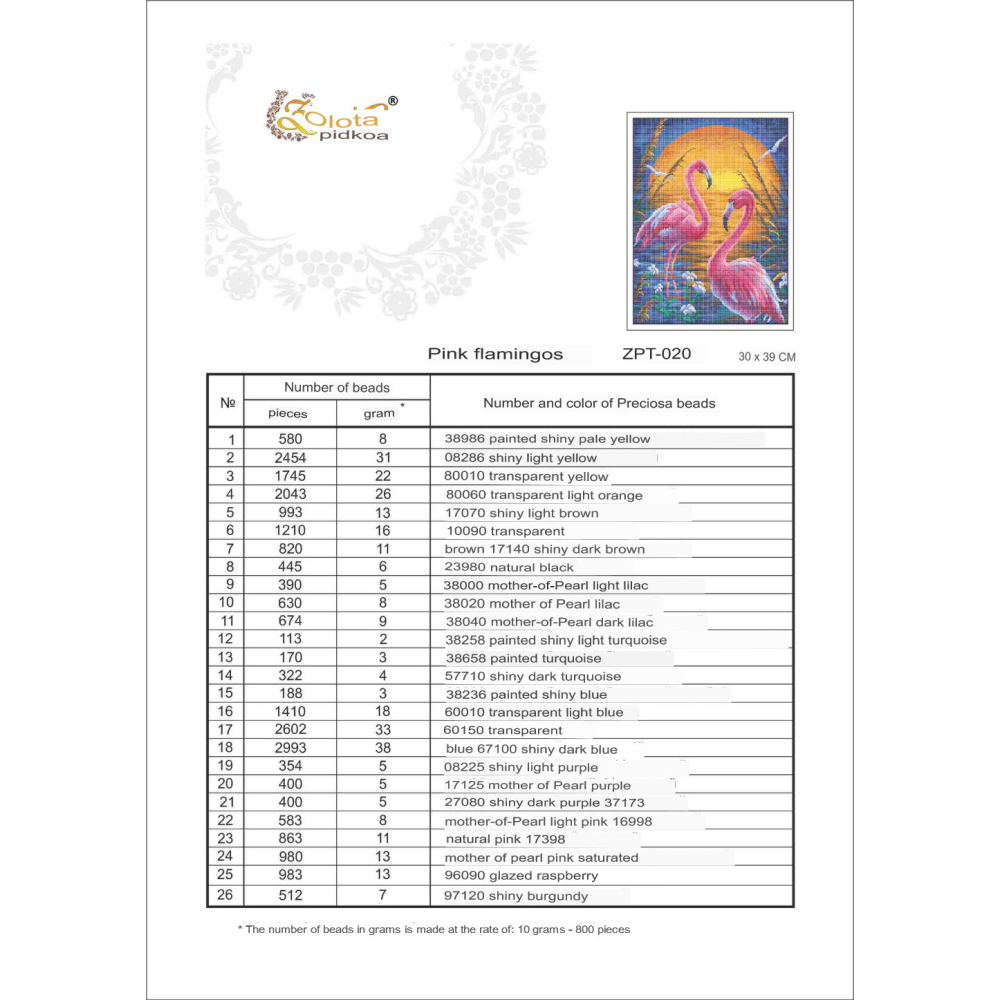 Poznámka: korálky, jehly a nitě nejsou součástí balení