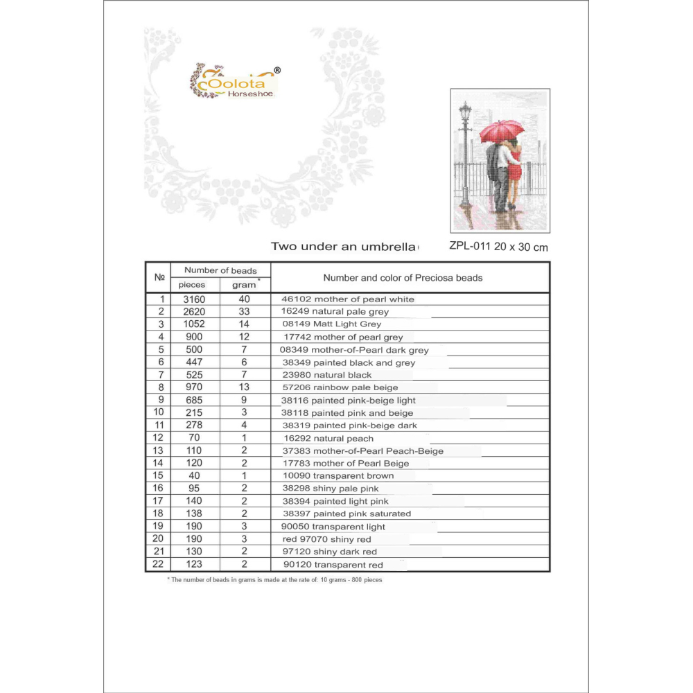 Poznámka: korálky, jehly a nitě nejsou součástí balení