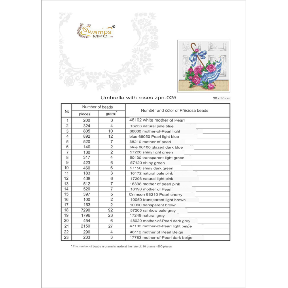 Plátno pro vyšívání korálky Velikost cca 43 x 45 cm Počet barev: 20 Vzor: Zátiší Materiál:...