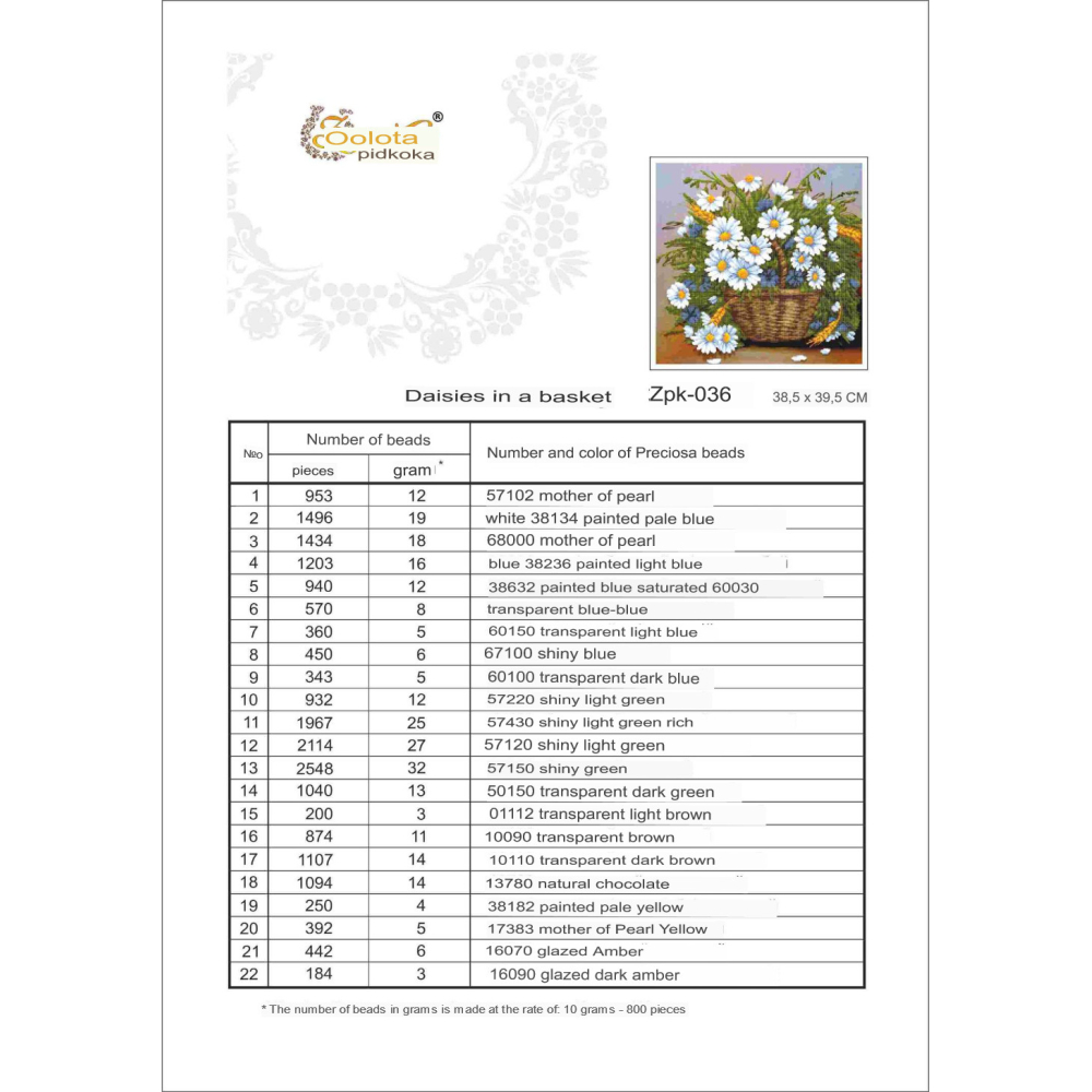 Plátno pro vyšívání korálky Velikost cca 20 x 25 cm Počet barev: 20 Vzor: Zátiší Materiál:...