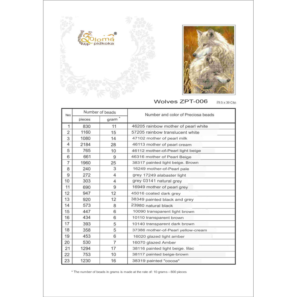 Poznámka: korálky, jehly a nitě nejsou součástí balení