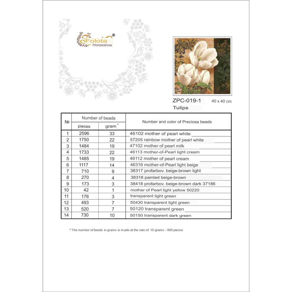Plátno pro vyšívání korálky Velikost cca 35 x 25 cm Počet barev: 23 Vzor: Zátiší Materiál:...