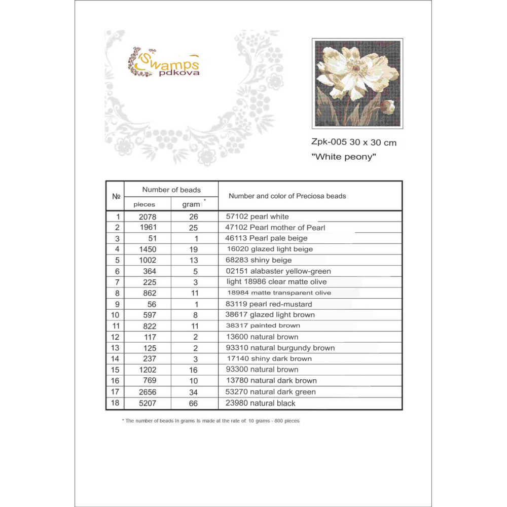 Plátno pro vyšívání korálky Velikost cca 35 x 28 cm Počet barev: 24 Vzor: Zátiší Materiál:...
