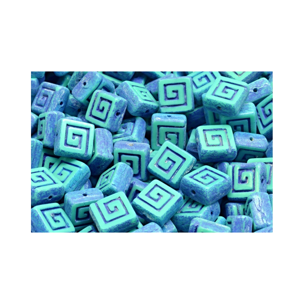 Skleněné ploškované korálky ve tvaru keltského čtverečku vyrobené v ČR firmou Rutkovský