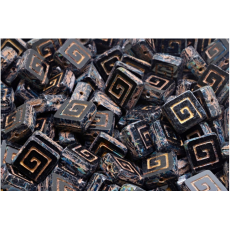 Skleněné ploškované korálky ve tvaru keltského čtverečku vyrobené v ČR firmou Rutkovský