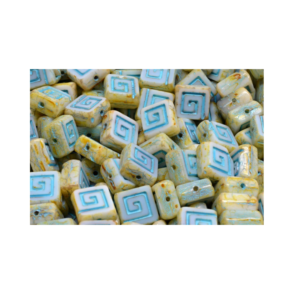 Skleněné ploškované korálky ve tvaru keltského čtverečku vyrobené v ČR firmou Rutkovský