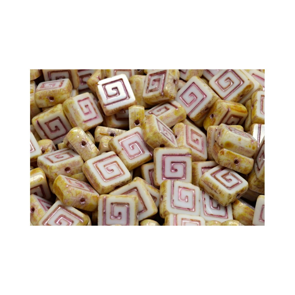 Skleněné ploškované korálky ve tvaru keltského čtverečku vyrobené v ČR firmou Rutkovský