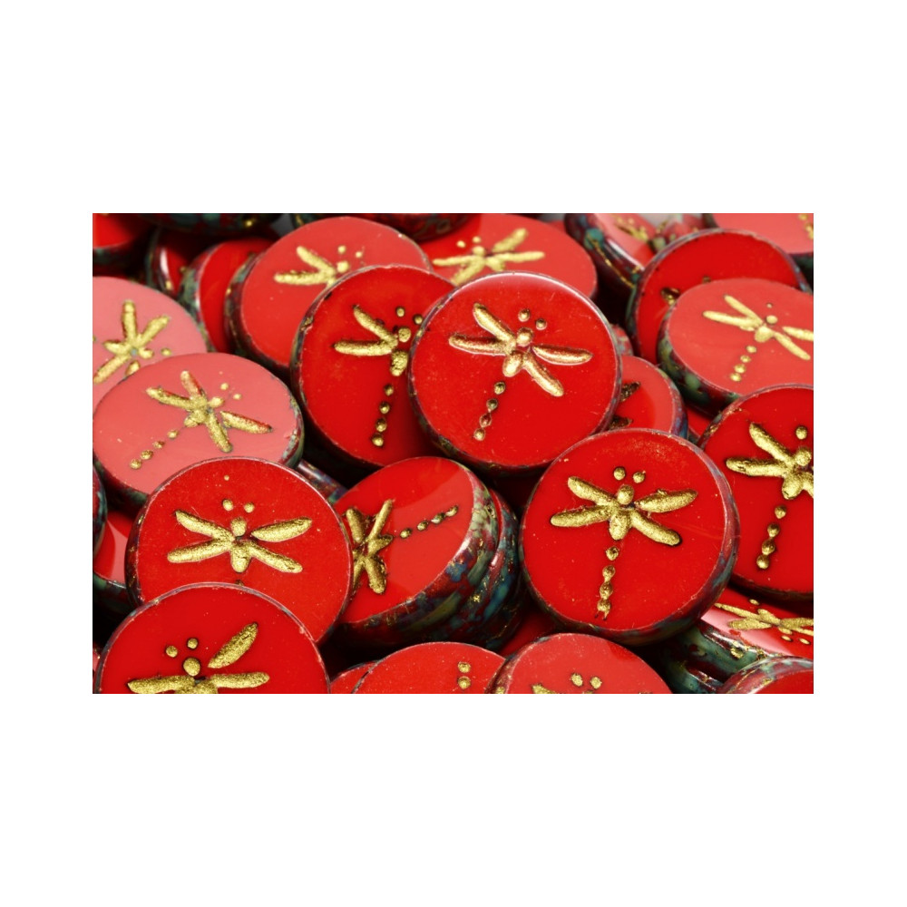 Tento ploškovaný korálek s nádherným motivem vážky je pravým klenotem českého šperkařského umění.