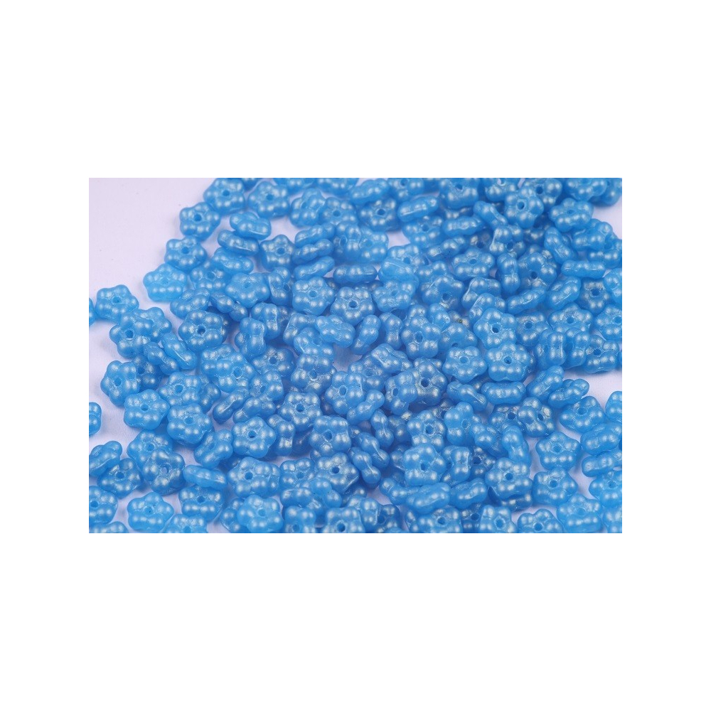 Korálky Forget Me Not 5x5 mm - drobné české korálky ve tvaru pěticípých mačkaných květů pomněnek. Každý korálek je jako vzpomínka na jarní pole plné květinové krásy.