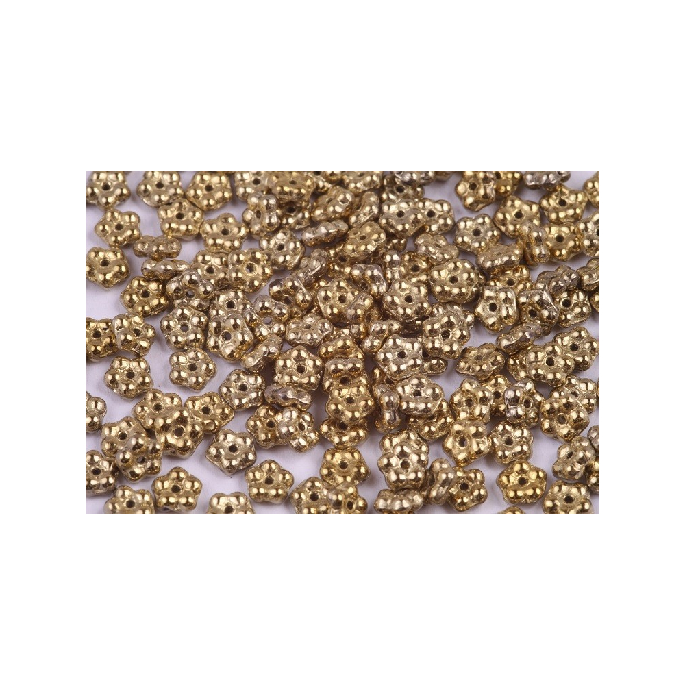 Korálky Forget Me Not 5x5 mm - drobné české korálky ve tvaru pěticípých mačkaných květů pomněnek. Každý korálek je jako vzpomínka na jarní pole plné květinové krásy.