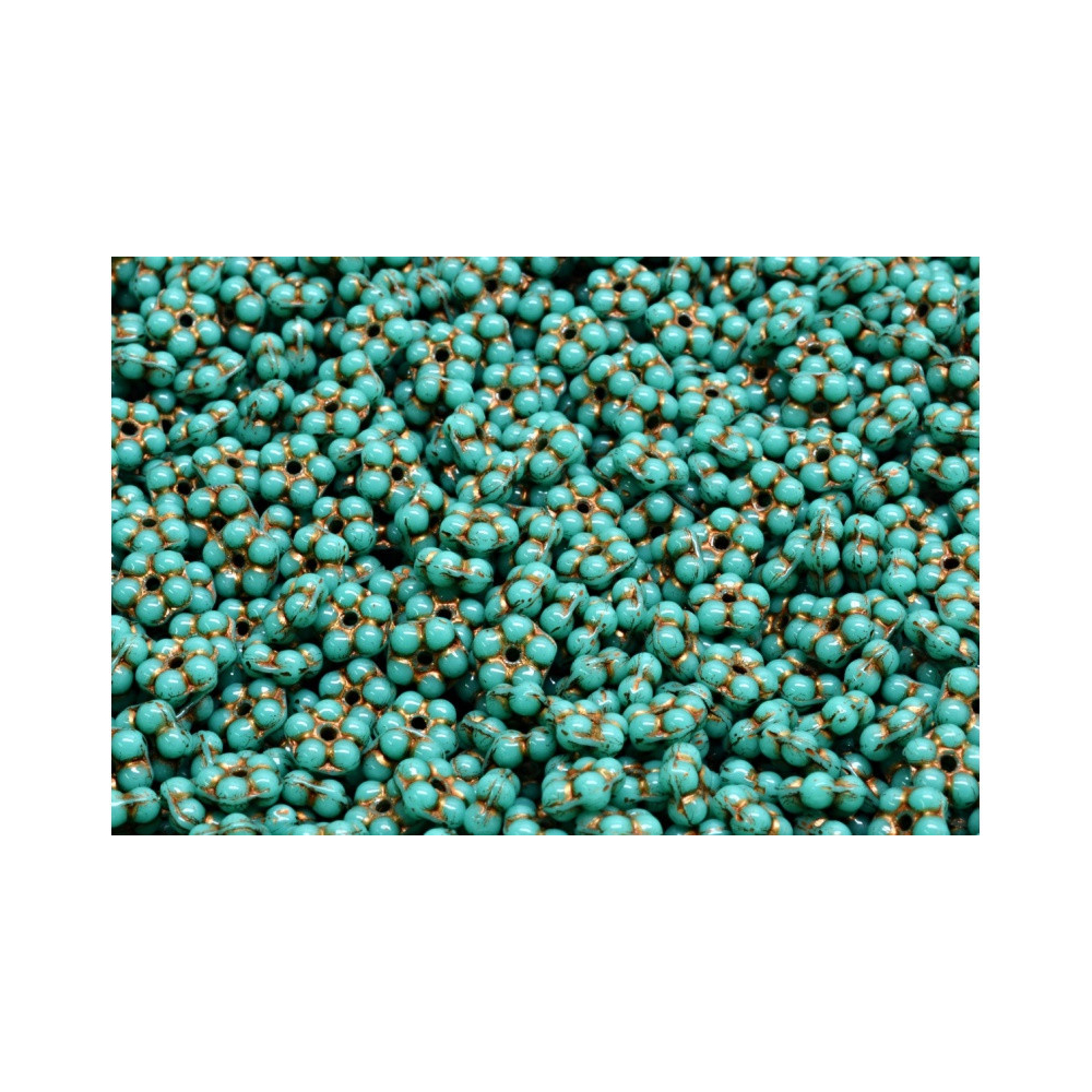 Korálky Forget Me Not 5x5 mm - drobné české korálky ve tvaru pěticípých mačkaných květů pomněnek. Každý korálek je jako vzpomínka na jarní pole plné květinové krásy.