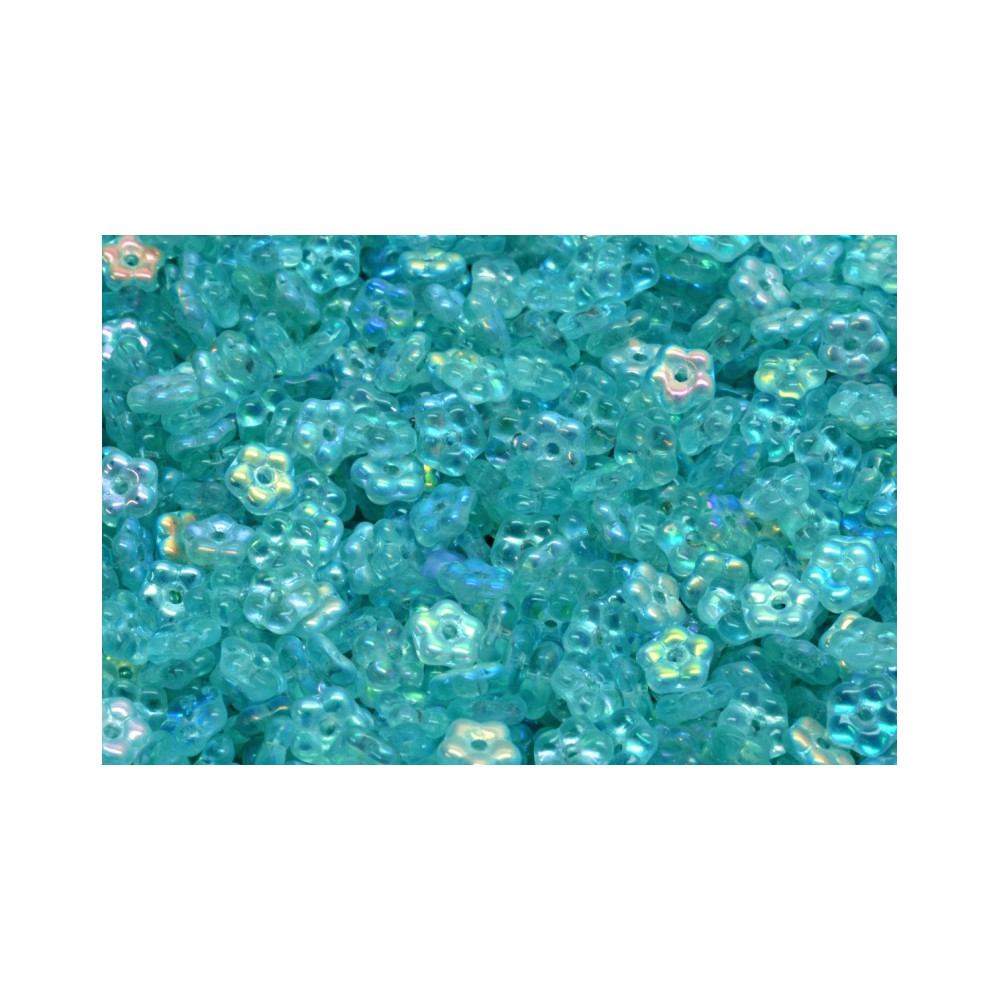 Korálky Forget Me Not 5x5 mm - drobné české korálky ve tvaru pěticípých mačkaných květů pomněnek. Každý korálek je jako vzpomínka na jarní pole plné květinové krásy.