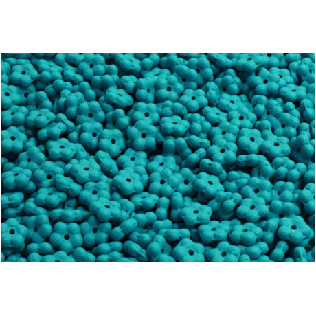 Korálky Forget Me Not 5x5 mm - drobné české korálky ve tvaru pěticípých mačkaných květů pomněnek. Každý korálek je jako vzpomínka na jarní pole plné květinové krásy.